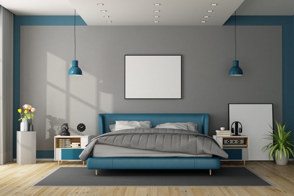 สีฟ้าและสีเทา เป็นสีแห่งความสมดุล ดูทันสมัย มีชีวิตชีวา ทั้ง 2 สีจัดอยู่ในสีโทนเย็น และเป็นคู่สียอดนิยมที่นำมาใช้ตกแต่งร่วมกัน ทำให้ภายในห้องนอนดูสงบ ผ่อนคลาย ดึงดูดให้เราอยากพักผ่อนขึ้นมากเลยทีเดียว