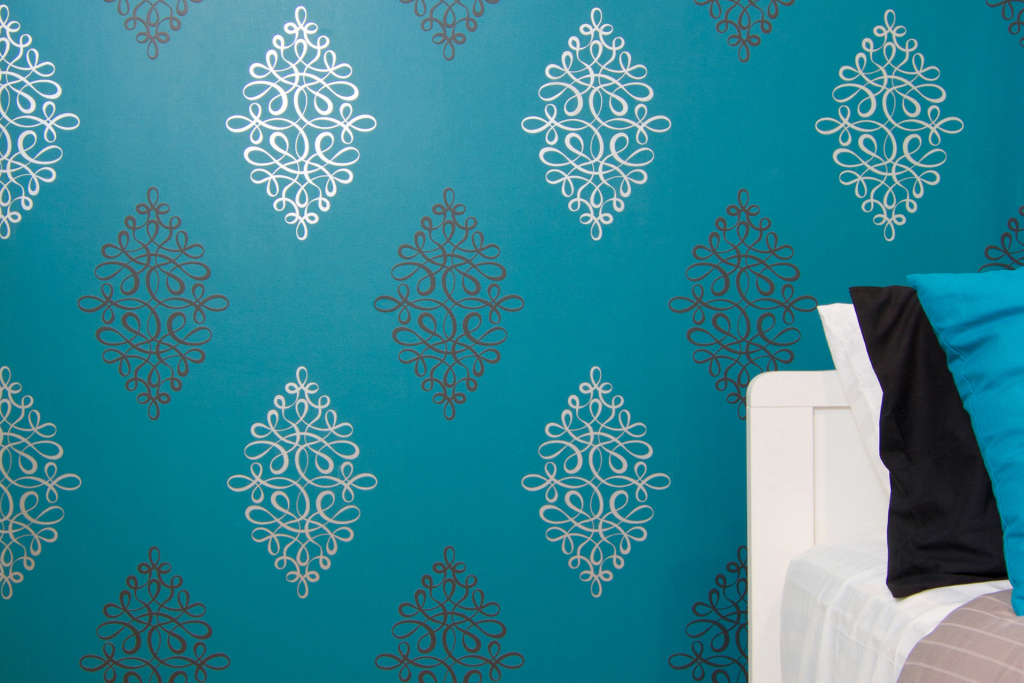 การใช้วอลเปเปอร์ที่มีลวดลายต่างๆ เป็นสีฟ้า จะช่วยบ่งบอกตัวตนของเจ้าของห้องได้ดี โดยเพื่อนๆ สามารถเลือกวอลเปเปอร์ในแบบที่ชอบ ทั้งรูปแบบและลวดลาย ทำให้ผนังห้องนอนสะท้อนความรู้สึกต่างๆ ของเจ้าของห้องได้ เช่น หรูหรา น่ารัก หรือเรียบหรูดูแพง อีกทั้งวอลเปเปอร์บางชนิดมีคุณสมบัติเก็บเสียง ทำให้เป็นผลดีอีกข้อหนึ่งสำหรับการพักผ่อน