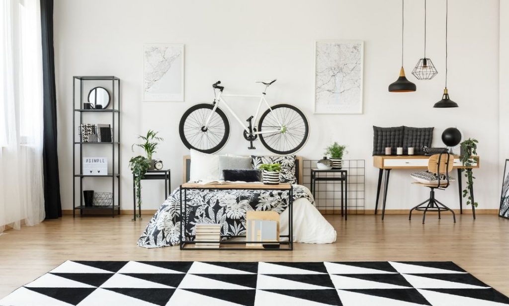 หากห้องนอนของเพื่อน ๆ ตกแต่งด้วยสีขาวอยู่แล้ว ก็สามารถเพิ่มเฟอร์นิเจอร์สีดำ เพื่อสร้างบรรยากาศการ แต่งห้องนอนสีขาวดำ ที่แตกต่างได้ โดยอาจจะเลือกใช้ โต๊ะหัวเตียงสีดำ โต๊ะทำงานสีดำ รวมถึงการเลือกใช้พรมสีขาวดำ ฯลฯ เพื่อให้ห้องนอนดูโดดเด่น สงบและอบอุ่นมากขึ้น