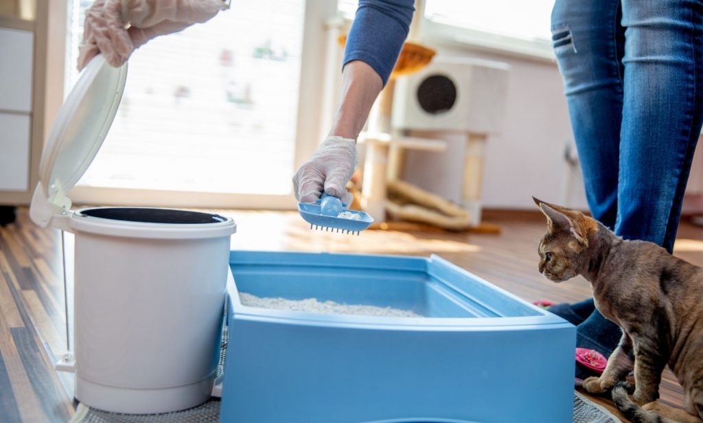 - ดูแลกระบะทรายแมว