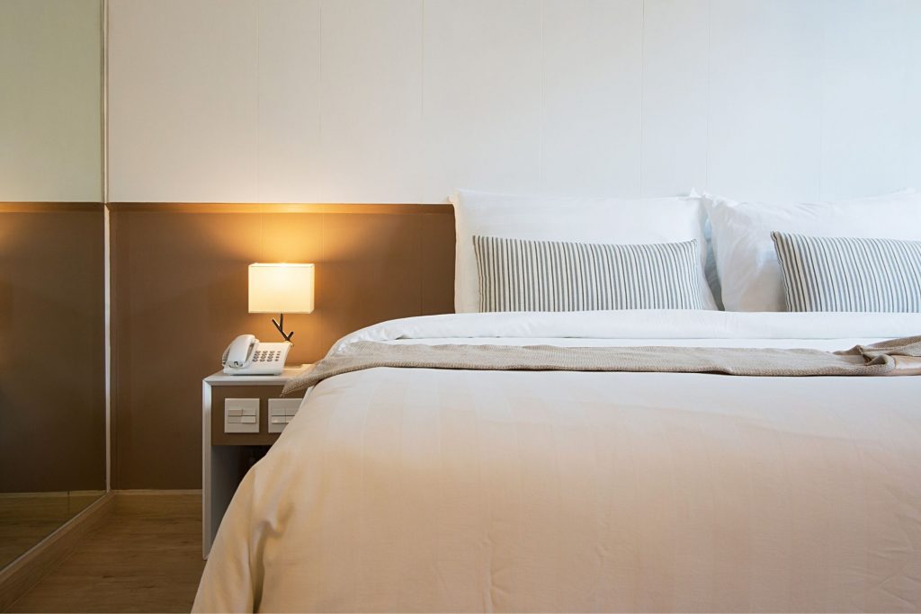 ในการจัดห้องนอนผู้สูงอายุ โดยเฉพาะเรื่องของ เตียงนอน ควรให้ความใส่ใจกับความสูงของเตียงที่พอดี ซึ่งควรอยู่ที่ประมาณ 25-36 นิ้ว ทั้งนี้ เราควรดูจากความสูงของผู้สูงอายุเป็นหลักด้วยค่ะ โดยวัดความพอดีจากการนั่งที่ขอบเตียง เท้าควรแตะพื้นได้พอดี จะทำให้ลุกนั่งได้สะดวก และความสูงของเตียง ควรอยู่ในระดับหัวเข่าค่ะ