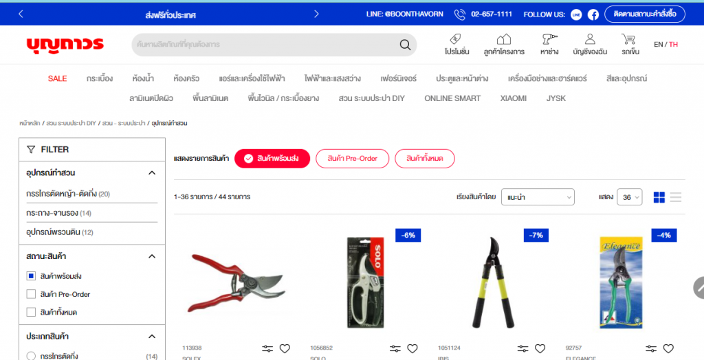 ปิดท้ายกันที่ บุญถาวร พี่ไว้ใจว่า เป็นอีกหนึ่งแหล่งที่ขายเครื่องมือทำสวน ให้เพื่อน ๆ ได้เลือกช้อป มีทั้งช้อปออนไลน์สำหรับคนที่ไม่สะดวกเดินทางไปด้วยตัวเอง หรือเพื่อน ๆ คนไหน อยากจะไปเลือกชมเองก็ได้ เพราะว่าที่นี่ มีหมดตั้งแต่ของแต่งบ้าน อุปกรณ์ก่อสร้าง ไปจนถึงอุปกรณ์ในสวนต่าง ๆ เช่น กรรไกรตัดหญ้า ตัดกิ่ง กระถาง จานรอง อุปกรณ์พรวนดิน ผ้าใบ ตาข่ายกรองแสง อุปกรณ์รดน้ำ เรียกว่าไปที่เดียว ได้ครบทุกอย่างเลยล่ะค่ะ