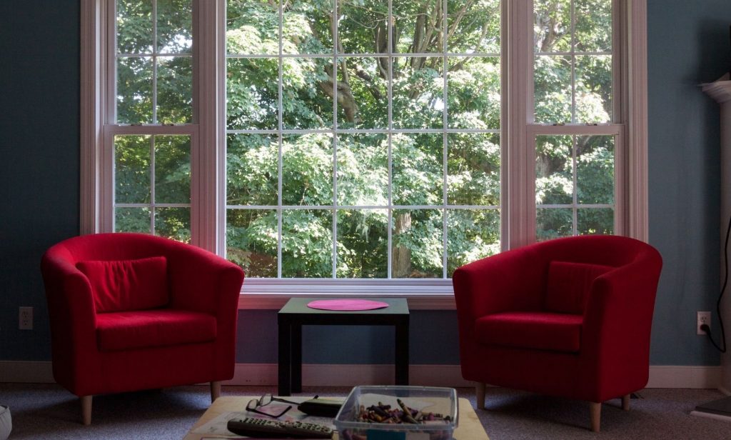 ห้องสีเทา เฟอร์นิเจอร์สีอะไรดี โทนสีสดก็จะช่วยให้ห้องมีจุดเด่นมากขึ้น อย่างเฟอร์นิเจอร์สีแดง ถือเป็นความต่างที่ลงตัว ด้วยผนังสีเทาที่ตัดกับเก้าอี้สีแดงสด เพิ่มความสว่างของห้องด้วยหน้าต่างกระจกใส เพื่อให้แสงจากธรรมชาติสามารถส่องผ่านเข้ามาได้