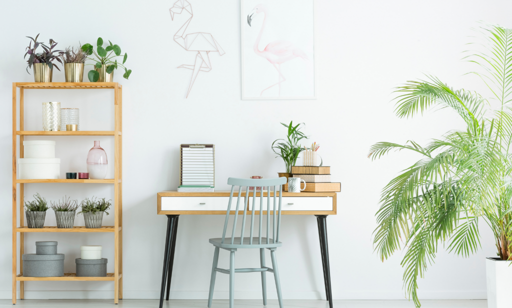 การนำต้นไม้มาตกแต่ง ออฟฟิศในบ้าน เป็นอีกหนึ่งไอเดียที่ดี ถ้าเพื่อน ๆ คนไหนกำลังอยากได้บรรยากาศเป็นธรรมชาติ สำหรับเพิ่มสีสันให้ชีวิตการทำงาน แต่ไม่สามารถนำต้นไม้มาวางได้ ให้ลองหาภาพพิมพ์ที่เป็นรูปใบไม้ ดอกไม้ หรือวิวธรรมชาติที่สวยงามตกแต่ง นอกจากภาพวาดแล้ว ก็อาจนำคอลเลกชันเปลือกหอย ดอกไม้ หรือหิน มาติดไว้ที่กรอบรูปบนผนังห้องทำงานก ็จะช่วยสร้างบรรยากาศเป็นธรรมชาติในห้องให้ดี และยังได้นั่งดูคอลเลคชั่นที่เราชื่นชอบทุกวันอีกด้วย