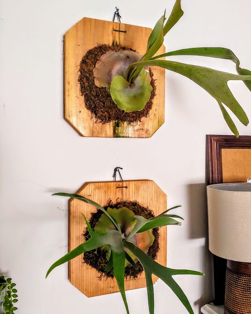 วิธีนี้ใช้กันมากที่สุด สำหรับ เฟิร์นเขากวาง เฟิร์นกระเช้าสีดา และ พืชตระกูลเฟิร์น แต่ในขณะเดียวกันก็สามารถทำได้กับพืชที่เป็นไม้เลื้อย อาทิ เช่น โฮย่า เดฟกระดุม ต้นเกล็ดมังกร ซึ่ง ต้นไม้แขวนผนัง รูปแบบนี้สามารถทำได้ง่าย เพียงใช้ลวดตาข่ายยึดรากของพืช ไว้บนกระดานพร้อมกับมอสส์ และกักเก็บความชุ่มชื้นด้วยการรดน้ำ ส่วนวิธีการรดน้ำนั้น ให้นำกระดานไม้ออกจากผนัง และ ใช้ฟ็อกกี้ฉีดน้ำเพื่อทำให้ต้นไม้เปียกชื้นอย่างทั่วถึง