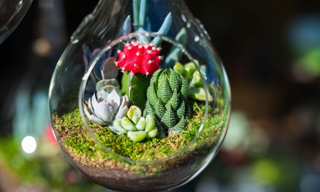 สวนขวดแก้วแบบแขวน เป็นวิธีที่สร้างความสนุกให้กับเพื่อน ๆ ในการจำลองธรรมชาติมาไว้ในขวดแก้ว และเป็นการจัดสวนที่แปลกใหม่ เพื่อแสดงต้นไม้ที่เราชื่นชอบ สำหรับต้นไม้ที่นำมาจัดในขวดแก้วนั้น ส่วนมากที่เลือกใช้ ได้แก่ ไม้อวบน้ำ กระบองเพชร และพืชที่ชอบความชื้น เช่น เฟิร์น ไม้เลื้อย และเปเปอโรเมีย เพราะต้นไม้เหล่านี้ไม่ต้องรดน้ำบ่อยนัก เนื่องจากในขวดแก้วจะเกิดระบบน้ำ ที่มีความชื้นจากชั้นดินและพืชระเหยออกมาเมื่ออุณหภูมิภายในขวดสูงขึ้น เพราะแสงและความร้อนที่ทะลุผ่านวัสดุโปร่งใส จะเกิดไอน้ำควบแน่น ก่อนจะหมุนกลับไปที่พืชและชั้นดินด้านล่าง ซึ่งจะเกิดวัฏจักรหมุนเวียนแบบนี้ภายในขวดแก้วเสมอค่ะ