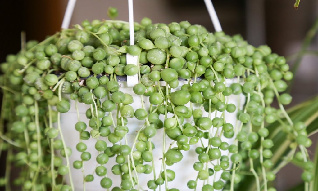 ต้นสร้อยไข่มุก เป็นต้นไม้อวบน้ำ ใบมีลักษณะเป็นคล้ายลูกปัดสีเขียว ย้อยระย้าลงมาเป็นพวงเหมือนเถาวัลย์ จะนำไม้ไปแขวนหรือตั้งไว้บนชั้นสูง ๆ ให้ใบห้อยลงมา ก็เก๋ไปอีกแบบ ควรปลูกในบริเวณที่ได้รับแสงแดดเพียงพอ แต่ต้องไม่โดนแสงแดดโดยตรง รดน้ำอาทิตย์ละ 1-2 ครั้งก็ได้