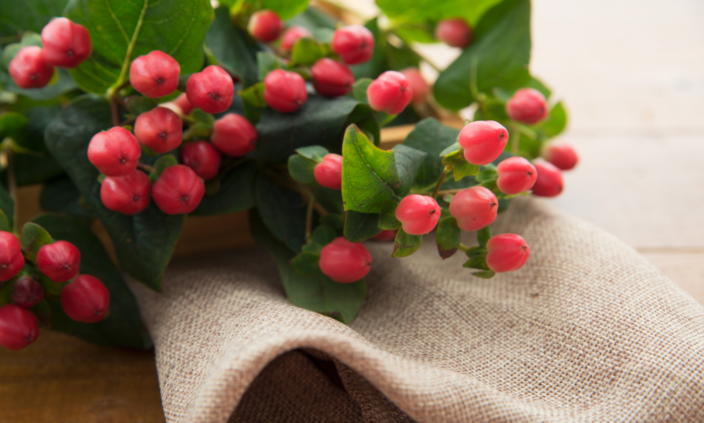 ไฮเปอร์ริคัม มีทั้งเป็นแบบดอกและผลเบอร์รี่ หรือ Red Hypericum Berries แต่นิยม นำผลเบอร์รี่มาเป็นองค์ประกอบในการจัดช่อดอกไม้มากกว่า ผลมีกลิ่นหอมหวาน ผลไฮเปอร์คัมสีต่างๆ ยังทำให้เรารู้สึกถึงฤดูกาลที่แตกต่างกัน สีน้ำตาลทำให้นึกถึงฤดูใบไม้ร่วง สีเขียวทำให้นึกถึงฤดูใบไม้ผลิ ซึ่งจะเข้ากันกับดอกกุหลาบ ดอกทิวลิป ดอกลิลลี่ และดอกอื่นๆ เป็น ดอกไม้ที่อยู่ได้นาน สามารถนำไฮเปอร์คัมมาปักในแจกันจะอยู่ได้ประมาณ 2 สัปดาห์ และถ้าอยู่ในที่มีอุณหภูมิที่ค่อนข้างเย็นจะอยู่ได้นานยิ่งขึ้น