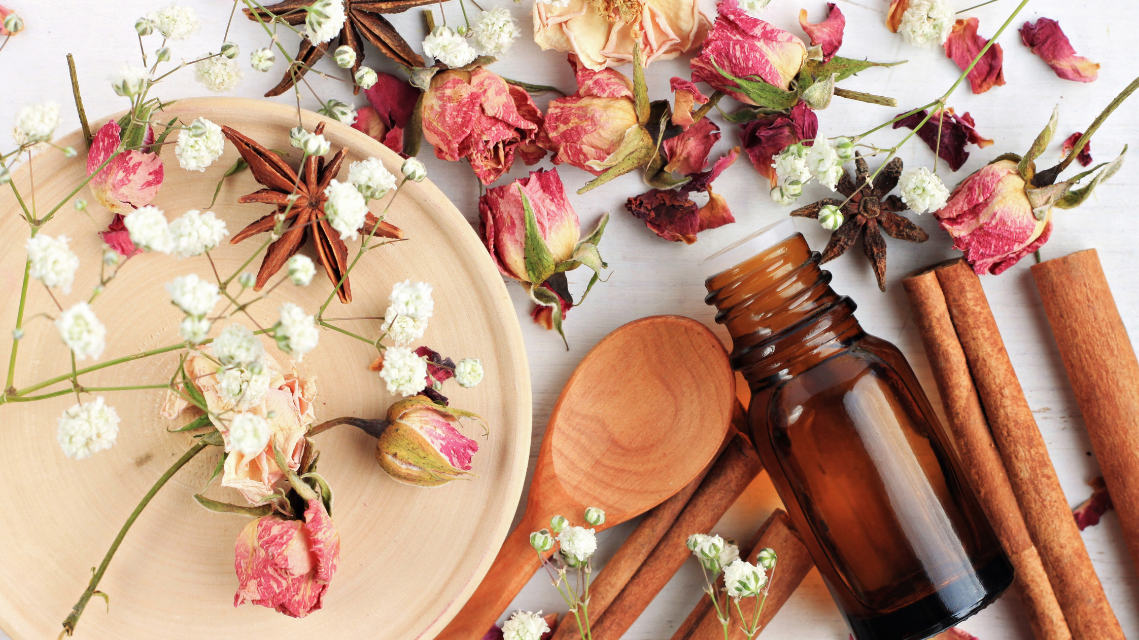 สำหรับผิวแห้ง : สมุนไพร หรือ น้ำมันหอมระเหย ดอกคาโมไมล์ มะนาว ลาเวนเดอร์ ส้ม ดอกมะลิ กุหลาบ