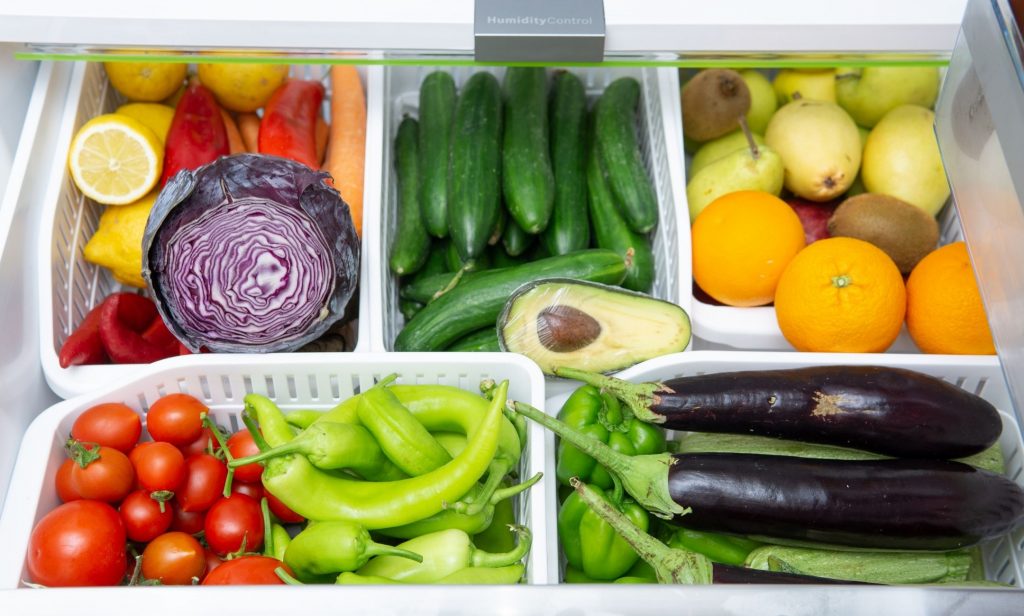 - ใช้ตะกร้าแบ่งช่อง จัดระเบียบตู้เย็น