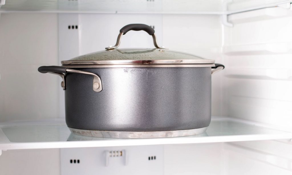 บ้านแบบครอบครัวใหญ่ โดยทั่วไปคุณแม่หรือคนที่มีหน้าที่ทำอาหาร ก็มักจะทำอาหารแบบหม้อใหญ่ เพื่อให้สามารถทานได้หลายคน แต่บางครั้งก็อาจจะทานไม่หมดในครั้งเดียว จึงต้องมีการแช่อาหารที่เหลือจากมื้ออาหารเอาไว้ภายในตู้เย็น ซึ่งบางคนก็อาจจะเลือกแช่อาหารทั้งภาชนะที่ใช้ปรุงอาหาร เพื่อให้ง่ายและสะดวกในการอุ่นอาหารเพื่อทานในครั้งถัดไป แต่การจัดเก็บแบบนี้ทำให้เราเสียพื้นที่ในการแช่ของอื่น ๆ ไปพอสมควร ทางที่ดีควรจัดเก็บด้วยกล่องพลาสติกหรือบรรจุภัณฑ์อื่น ๆ จะดีกว่าค่ะ