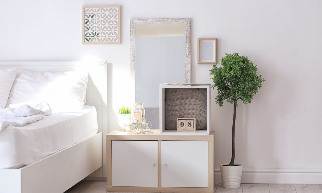 - การ จัดโต๊ะข้างเตียง เพื่อสำหรับใช้ในการจัดเก็บของใช้ชิ้นเล็ก ๆ อย่าง นาฬิกา เครื่องประดับ และ แว่นตา เพื่อน ๆ อาจจะหากล่องหรือถาดเล็ก ๆ สักอัน มาวางไว้สำหรับจัดเก็บสิ่งของเหล่านี้ให้เป็นระเบียบ