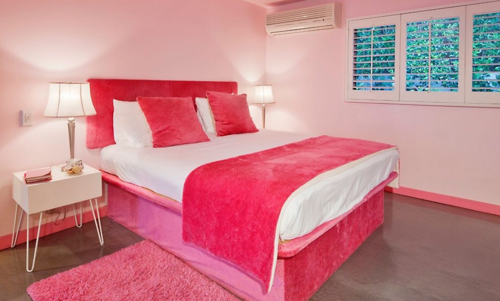 - ใช้เฟอร์นิเจอร์และของตกแต่งสีชมพู