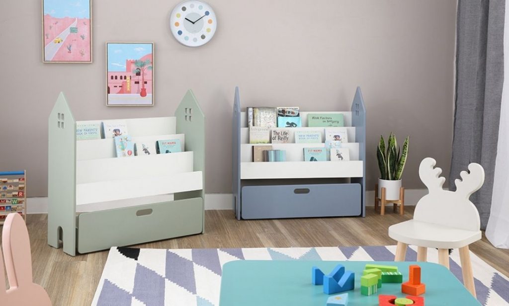 เลือกใช้ชั้นวางหนังสือ สำหรับนิทานสุดโปรดของลูก ๆ ให้เข้าที่เข้าทาง และสะดวกในการเลือกหนังสือมาอ่าน จะเลือกเป็นชั้นวางตั้งพื้น หรือจะบิ้วท์อินติดผนัง ก็ขึ้นอยู่กับความสะดวกและพื้นที่บ้านของเพื่อน ๆ ด้วยนะคะ