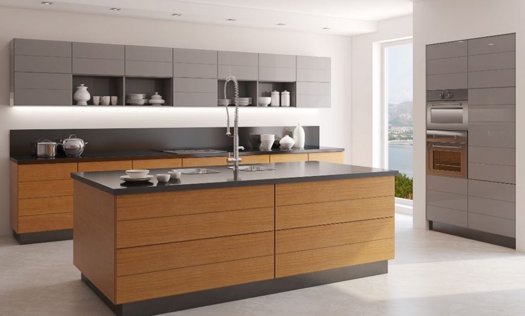 การตกแต่งจะเน้นความเรียบง่าย สบายตา ใช้วัสดุที่มีความเงา เช่น ไฮกลอส เพื่อความสวยเนี๊ยบทันสมัย มีความโดดเด่นและหรูหรา ห้องครัวสไตล์โมเดิร์นจะไม่เน้นเฟอร์นิเจอร์ที่มากชิ้น และจะต้องมีฟังก์การใช้งานที่คุ้มค่า เพื่อไม่ให้ครัวดูรกมากเกินไป จัดแบ่งพื้นที่เป็นสัดส่วน ไม่ว่าจะเป็นโซนทำอาหาร หรือโซนล้างทำความสะอาด เน้นความคล่องตัวในการใช้งานเป็นหลัก เหมาะสำหรับไลฟ์สไตล์คนเมืองที่ต้องใช้ความรวดเร็ว เช่น เคาน์เตอร์ตรงกลาง ซึ่งสามารถใช้ประโยชน์ในการนั่งรับประทานอาหารแทนโต๊ะทานข้าวได้ แถมประหยัดพื้นที่ใช้สอยได้ด้วยค่ะ