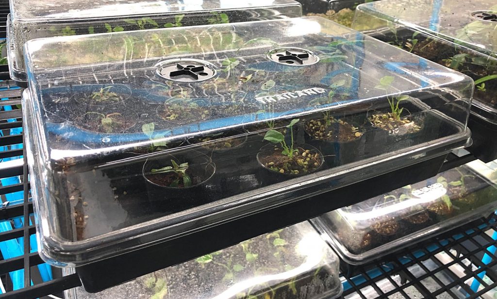 แต่ถ้าจำนวนต้นไม้มีมาก อาจใช้เป็น ถาดเพาะเมล็ด แบบมีฝาครอบ ไปเลยก็ได้ค่ะ หากกระถางมีขนาดใหญ่มากกว่านี้ ก็ทำได้เช่นเดียวกัน เพียงเปลี่ยนจากแก้วพลาสติก เป็น ถุงพลาสติกใส แต่ให้ใส่ไม้ค้ำเล็ก ๆ ความสูงเท่ากันกับปากถุง หรือยาวมากกว่าปากถุงเล็กน้อย ปักลงดินในกระถาง จากนั้นทำการครอบถุงและมัดให้แน่น โดยให้ภายในถุง มีความโป่งพอง จะใช้การเป่าลม หรือรวบอากาศเข้าไปเล็กน้อยก็ได้